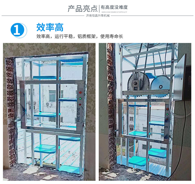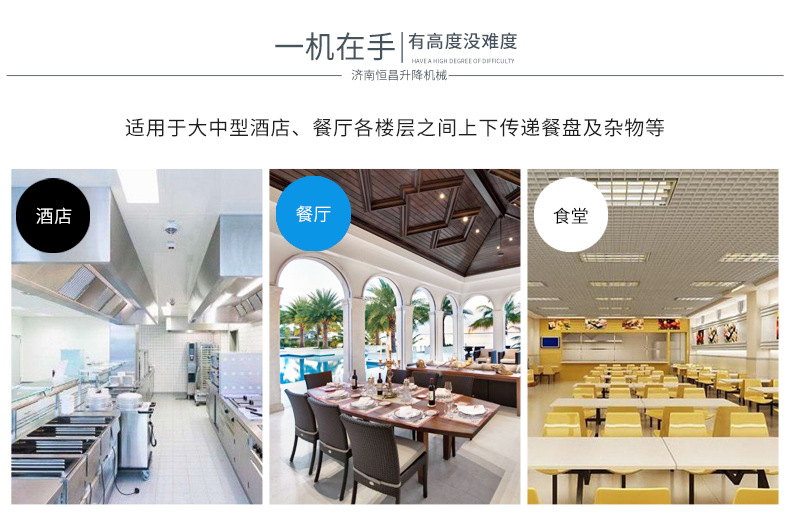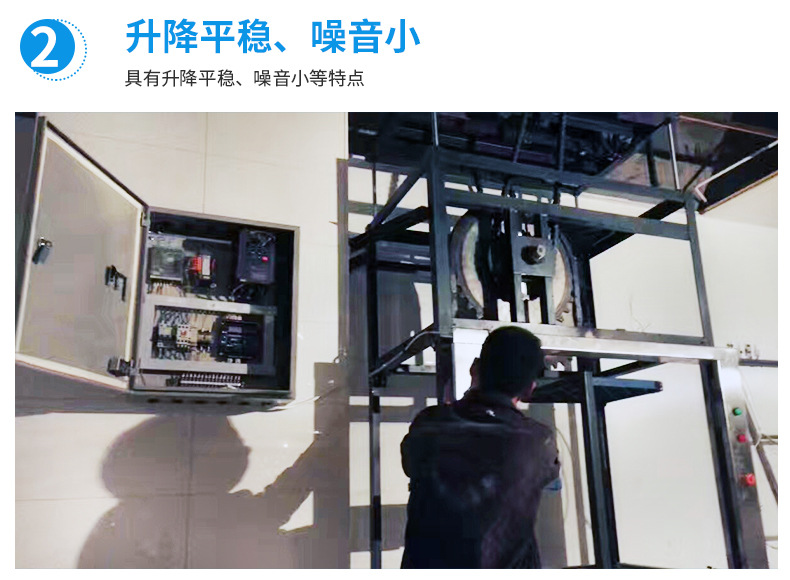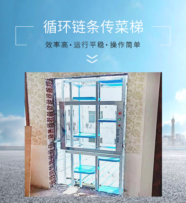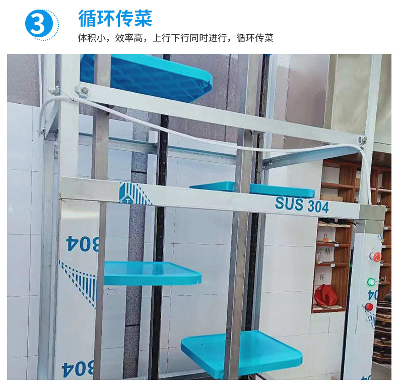 2.效率高:上行下行同時進行,循環傳菜,一臺抵六臺傳統的廂式傳菜電梯。